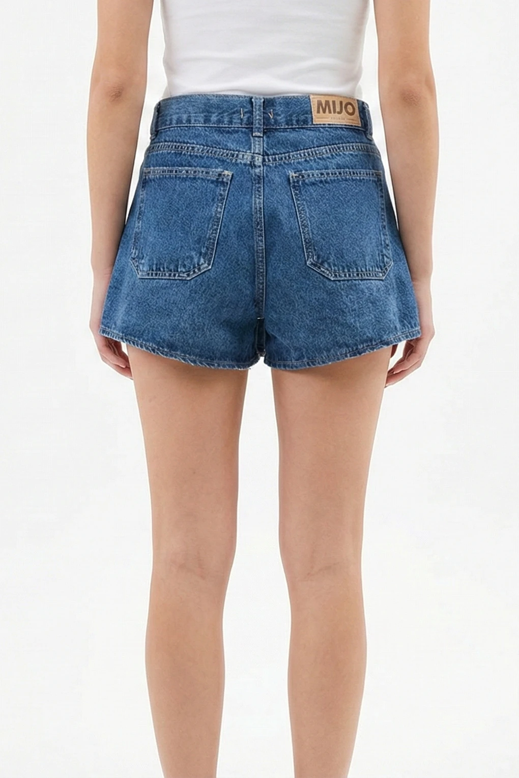 Short pollera doble ojal azul arenado bigotes